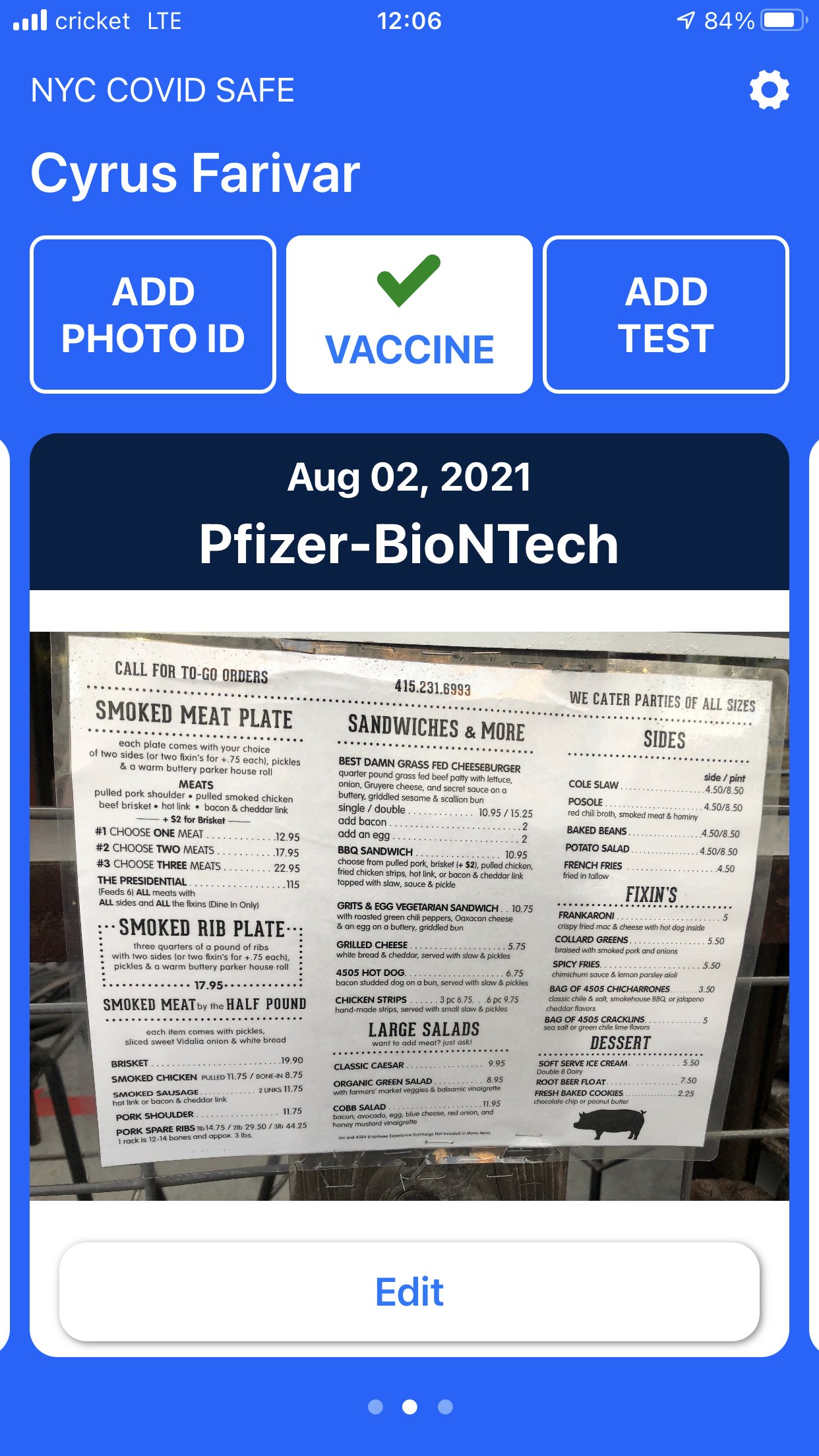 Okay, clearly the app takes literally any picture you give it and puts a checkmark on it. That's okay because I think the theory is you show the picture on the app to a human with eyes who validate that it looks like a vaccine card. Unfortunately, the picture is probably less reliable than the real thing since the app seemingly had nowhere to validate the back of the card - where lots of very specifically formatted information is.
