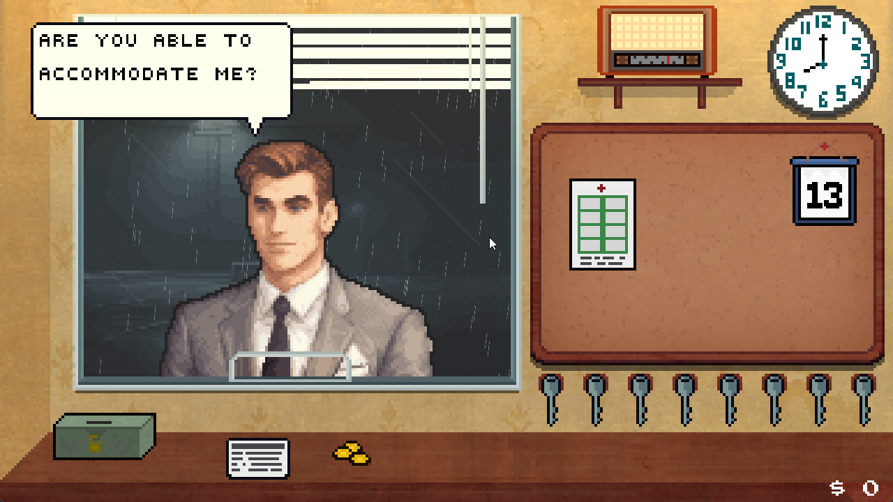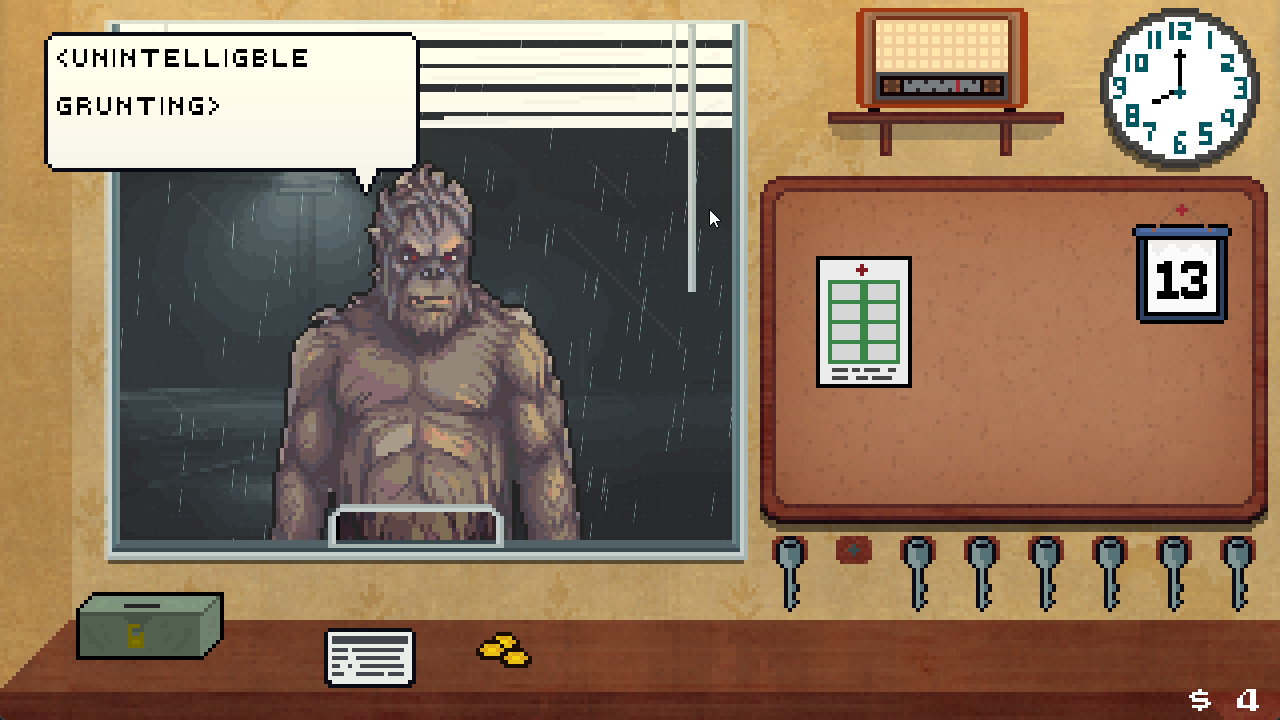 This was our "Halloween" game, a sort of social deception game where you are the night shift manager at a motel who had to admit guests (a bit like Papers, Please!) and the guests are humans...or less than humans (Eg. monsters) and then depending on what you do various things happen...this game fell apart once we realized two things
